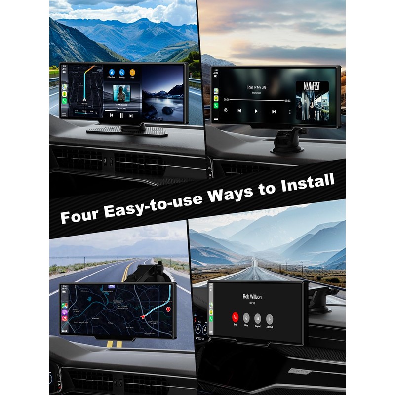 - 【Plug-and-Play Portability & Universal Compatibility】Designed for portable carplay, this car audio receivers works in any vehicle (7V-32V) and installs in minutes with a suction mount or adhesive base. No car disassembly needed! This car screen is plug-and-play and can be transferred to a different vehicle for use, providing a smarter, safer way to use Carplay/Android Auto in any car.