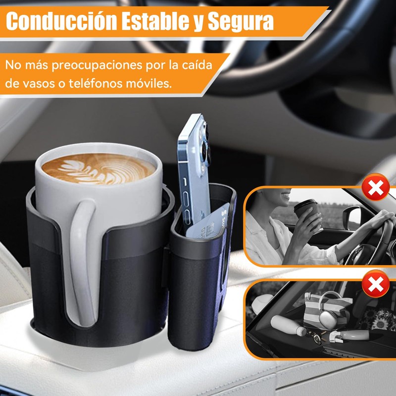 Portavasos para Auto, 2 en 1 Expansor de Portavasos para Coche con Base Ajustable y Soporte Extraíble para Teléfono, Multifuncional Soporte Apto para Botellas de Agua, Tazas, Café de 2.5''-3.75''