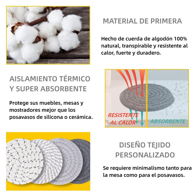 - 【Excelentes ideas para regalos】 Estos posavasos no solo absorben bien el agua, sino que también son perfectamente resistentes al calor, por lo que se pueden usar como posavasos para bebidas y agarraderas. Es un regalo ideal para inauguración de la casa, cumpleaños o vacaciones.