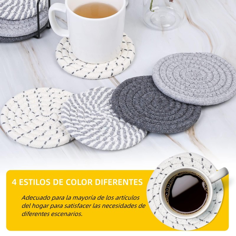 - 【Tamaño correcto y hermoso diseño】Cada diámetro es de aproximadamente 4,8 pulgadas, más grueso y más grande que otras marcas. Este posavasos de tela presenta un estilo tejido para evitar que las tazas se resbalen y reducir el ruido de las tazas.