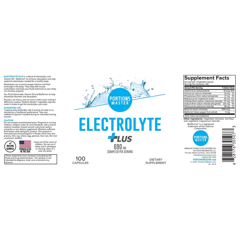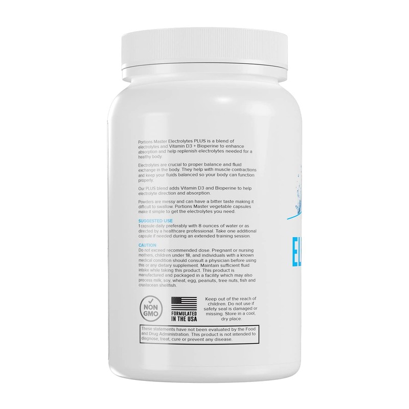 Portions Master Electrolyte - Vitamin D3 + BioPerine for Enhanced Absorption - 690mg (Complex) - 100ct Vegetable Capsules