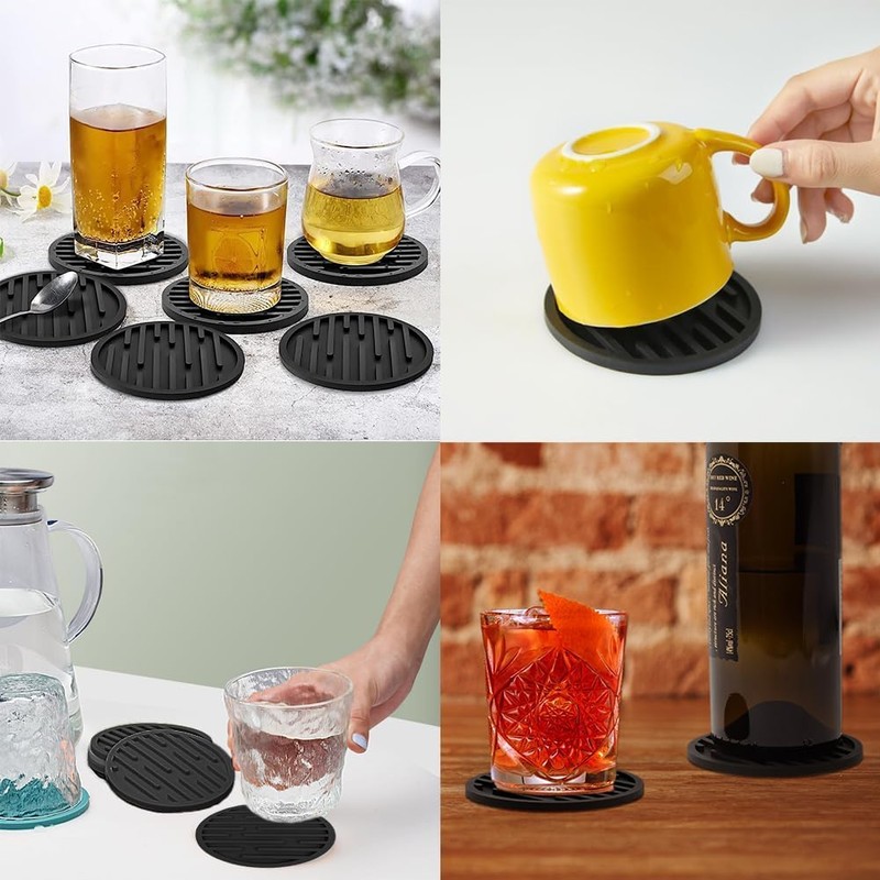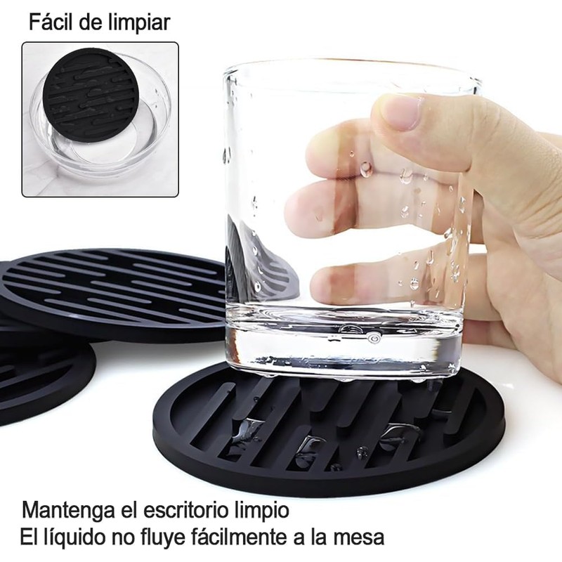 - Fondo antideslizante: los posavasos están hechos de material de silicona con un patrón único para evitar fugas. La parte inferior está diseñada con una superficie antideslizante alta para garantizar un excelente agarre en el escritorio.