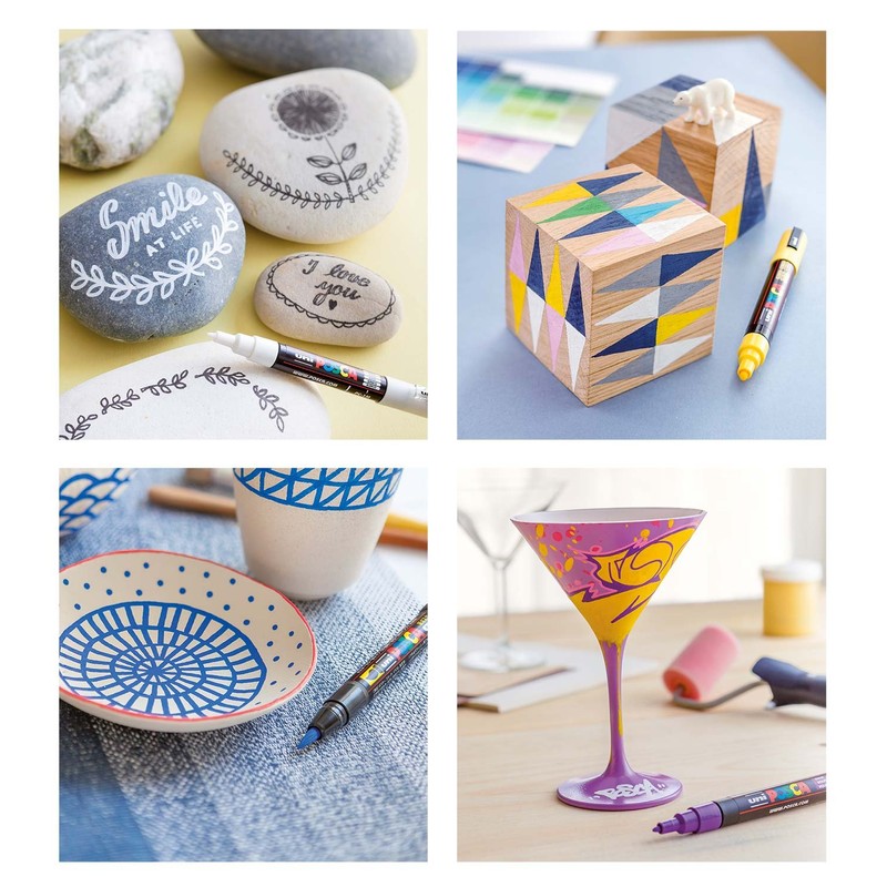 Non-toxic, water-based POSCA paint markers can be used on almost any surface, and are loved by professionals, creative hobbyists and amateurs alike. The alcohol and solvent-free opaque paint covers well, is blendable, dries quickly and can be overlaid when dry. ACMI certified and made in Japan. The PC-1MR extra-fine tip marker has the same qualities as a paint marker in the form of a fine tip pen. It's designed for professionals and beginners requiring an ultra-fine and consistent line in a wide selection of colors.
