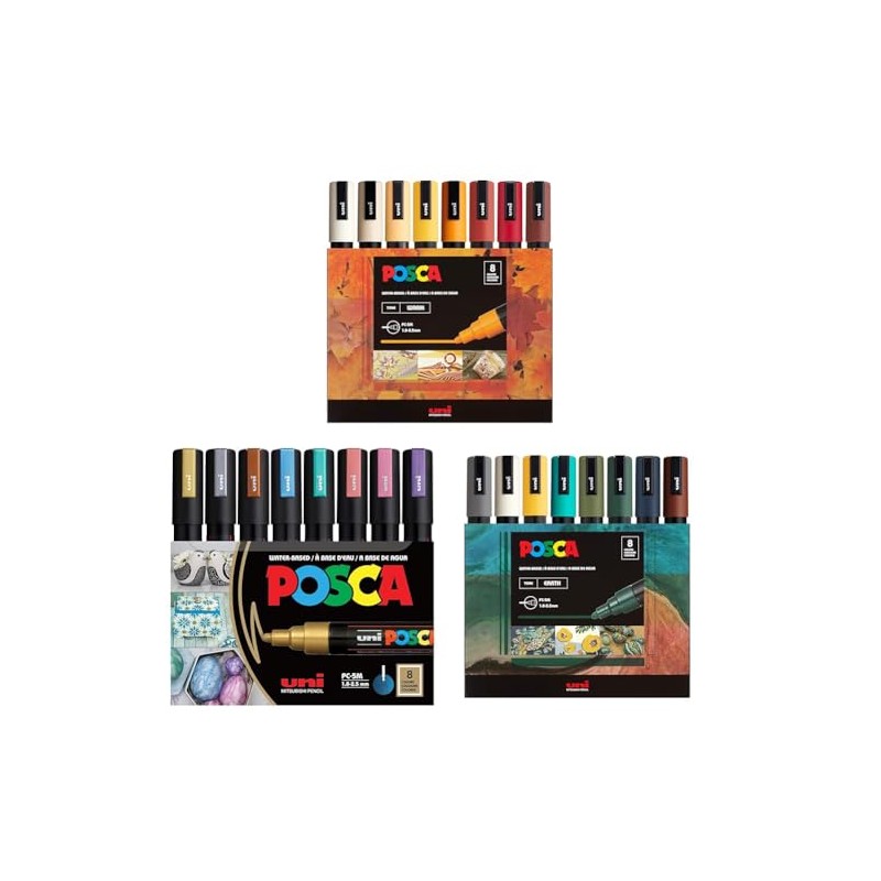 Posca Markers Bundle, 24 Medium Paint Markers - 5 Warm Tones + 8 Metallic + 8 Earth