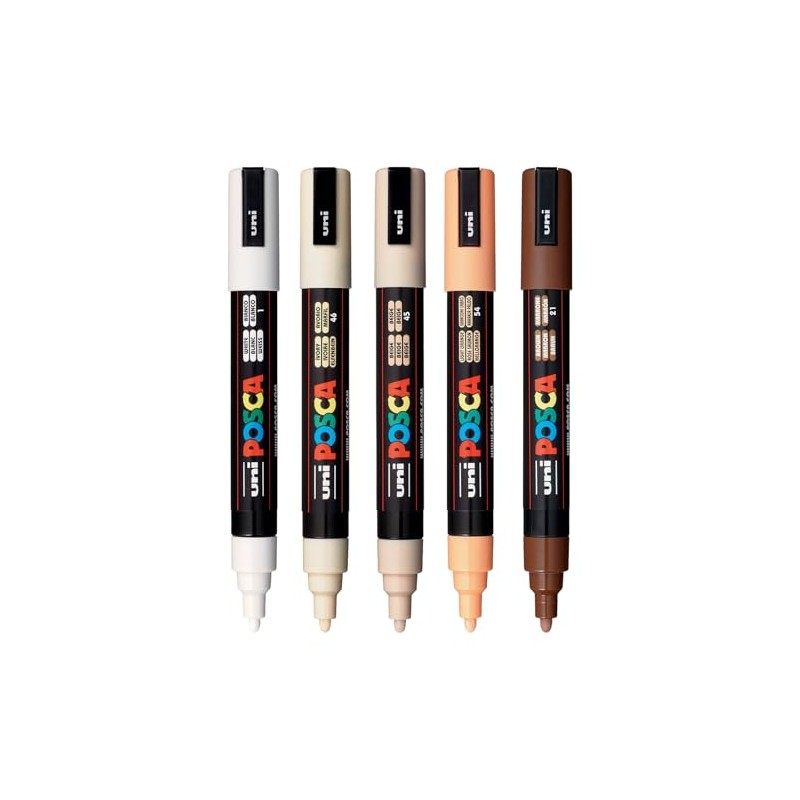 posca Paint Art Markers, Set of 5 5M Medium Markers with Reversible Tips, Neutral Collection