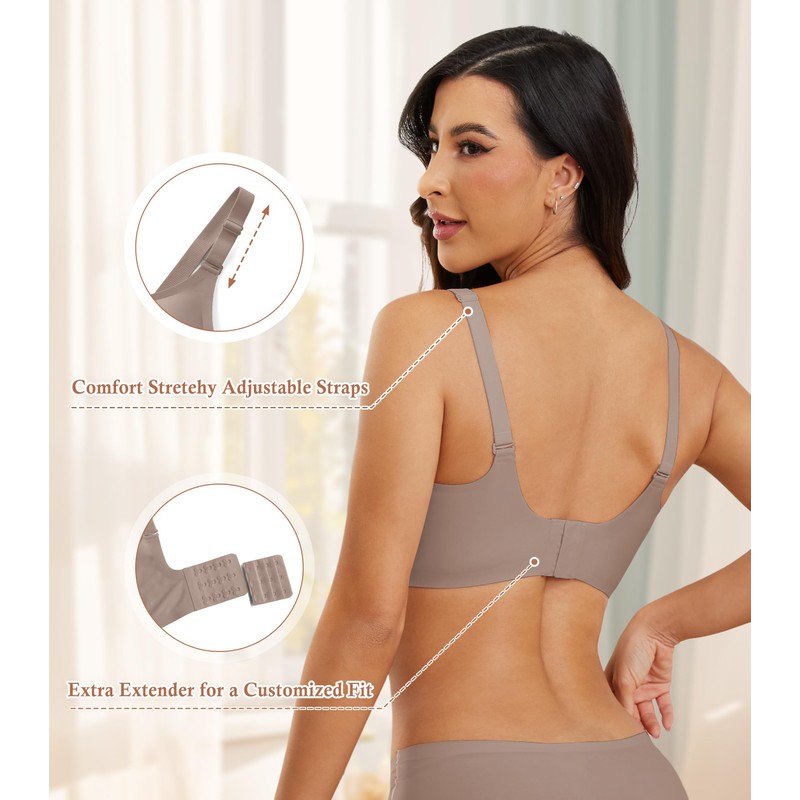 - Sexy V Neck Bras for Women - The seamless bras ensure invisibility under clothing from t-shirts to backless tops dress, giving you the freedom to mix and match with different styles.Perfect for all day wear, work, sleep, home, party, light exercise, hiking,yoga