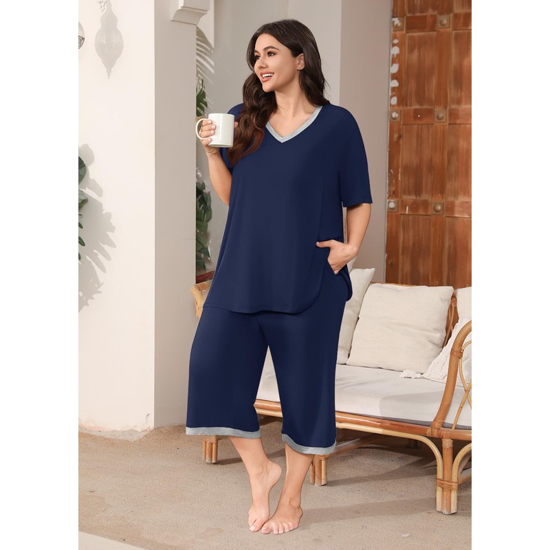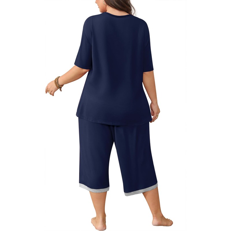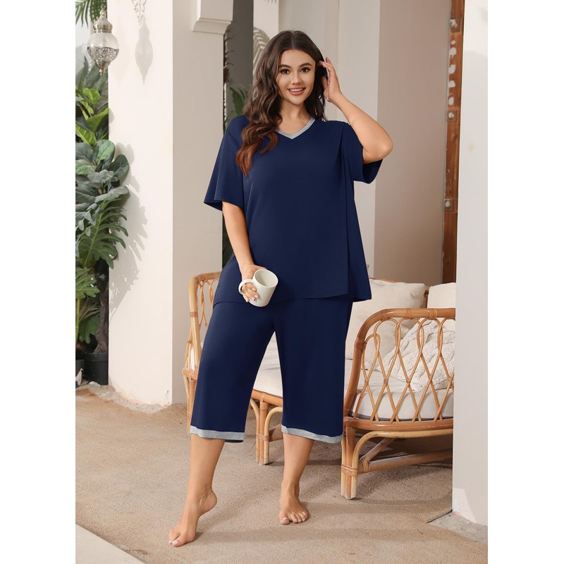 - ❤【Feature】: Plus size short sleeve sleepwear for relaxed fit for day and night, exquisite design makes you beautiful and elegant, enjoy your relaxing time. The elastic drawsting waistband of pajama sets makes it more suitable for you, provide you the max freedom and relaxing!