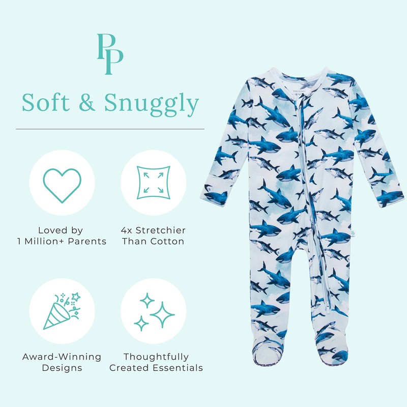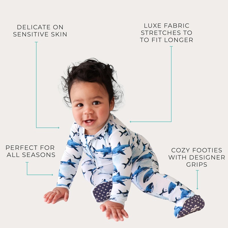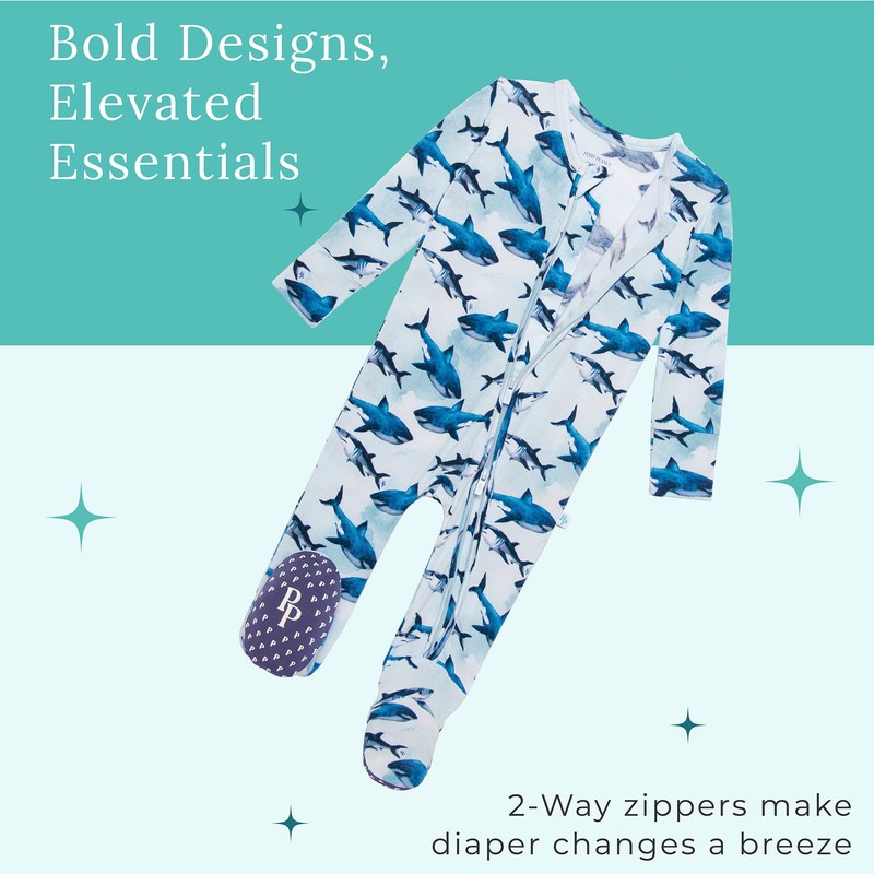 Posh Peanut Baby Boy Footie Pajamas - Soft Viscose Made from Bamboo 2 Way Zipper Sleepers & Onesies with Non-SlipGrips for Newborns to Toddlers (Newborn / 0-3 Months) Sharks
