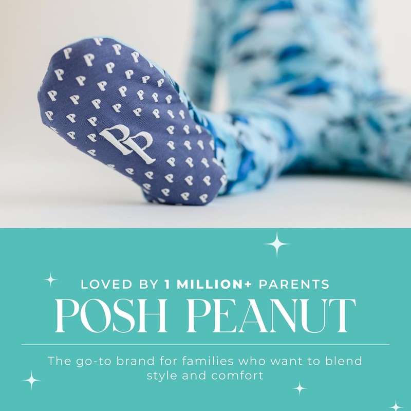 Give your little one the softest and most comfortable sleepwear with Posh Peanut baby boy sleepers, made from viscose derived from bamboo for a luxuriously soft and breathable feel. These footie pajamas baby boy are designed to keep your baby cozy while preventing overheating, making them perfect for year-round wear. Whether you need 0-3 month sleepers, sleepers 3-6 months, or baby sleepers 0-3 months, our stretchy, snug fit ensures comfort for newborns and growing babies alike. Say goodbye to fussy diaper changes! Our 2 way zipper sleepers baby boy feature a two way zipper onesies design that allows you to unzip from the top or bottom. This makes nighttime diaper changes quick and easy without fully undressing your baby, keeping them warm and comfortable. These baby footie pajama sleepers are designed with non-slip grips on the soles to provide extra traction as your little one starts standing and walking. Perfect for active babies, our baby boy footie pajamas help prevent slipping on hardwood or tile floors, ensuring stability for those important first steps. Our bamboo sleepers for baby boy are made from viscose from bamboo, known for its moisture-wicking and breathable properties. The bamboo pajamas baby fabric is ultra-soft, preventing irritation while keeping your baby comfortable throughout the day and night. Designed for both function and style, our newborn pajamas baby boy come in unique, boutique-quality prints that make every moment picture-perfect. These bamboo baby pajamas are machine washable, fade-resistant, and ultra-durable, ensuring they remain soft and stylish wash after wash. From newborn sleepers baby boy to baby boy clothes 6-9 months, our baby boy pajamas come in a variety of sizes, including 0-3 months baby boy clothes, baby boy onesies 3-6 months, and newborn boy clothes. Designed to fit snugly while allowing room to grow, these baby pajamas are the perfect combination of comfort and convenience.