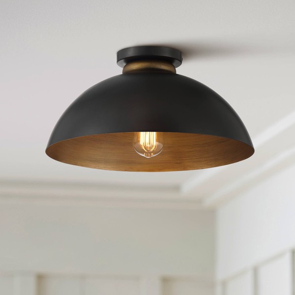 - 【Contemporary lighting with a bold touch】Ideal for entryway, garage, or basement lighting, this Possini ceiling light is an elegant, black semi flush mount ceiling light. Suitable for home kitchen or living room lighting setups, it enhances any ceiling fixture with a chic, industrial ceiling light. Industrial dome semi-flushmount ceiling light. A modern look for kitchen lighting or hallway illumination.