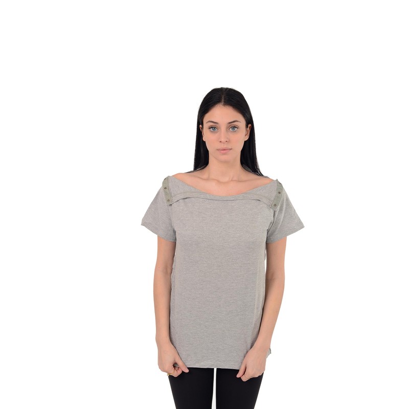 Post Surgery Recovery Tshirt Snap Open Tearaway Shirt (2XL, Grey/Women)
