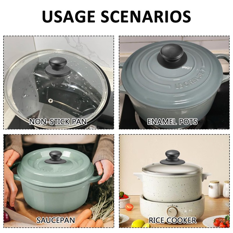 - WIDELY USED:The replacement knobs is a good helper for kitchen use.Pan lids are suitable for many types of cookware pot lid covers, such as frying pan lids,pot lids,glass lids,oil pot etc,and also suitable for a variety of cookware lids.Great for replacing old and damaged pot lid knobs