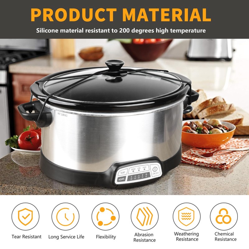- Material of Crock Pot Lid Strap: This crock pot lid lock holder strap is made of silicone material, silicone material resistant to 200 degrees high temperature different from rubber, silicone material has chemical corrosion resistance, abrasion resistance, weather resistance and other material features.