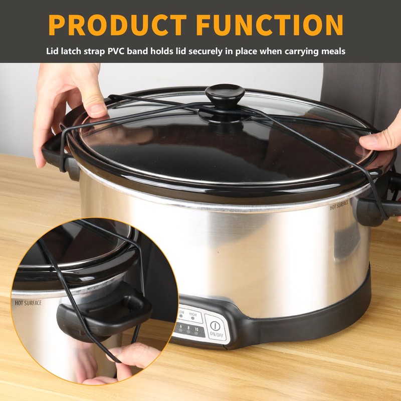 Slow Cooker Lid Lock: This is a product strap used to hold on lids of the pot, preventing the lid from sliding and spilling food.