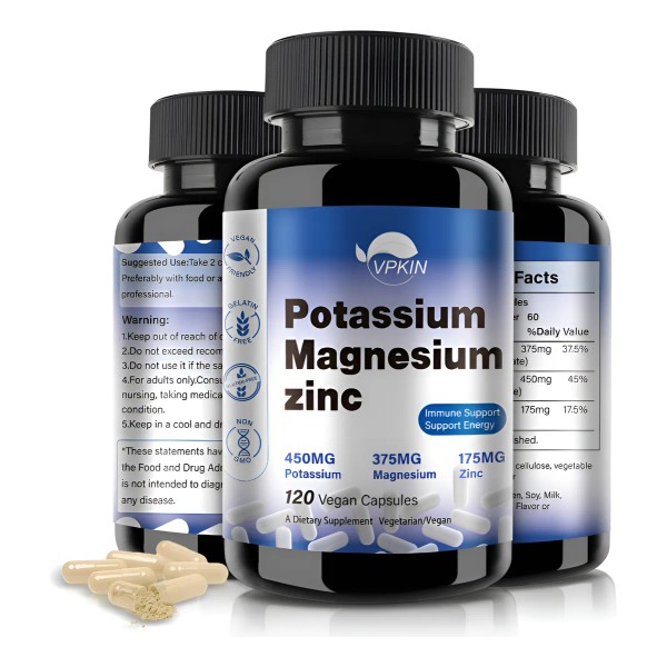 Potasio + Magnesio + Zinc Con 120capsulas Vpkin Hecho En Usa Sin Sabor