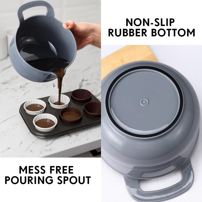 - Flexible Handles: our mixing bowls with pour spout are enough wide and strong, comfortable and easy to grasp, so you can easily stir anything, from thick dough and batter to light seasonings and waffles, and the deeper can be easily stirred without worrying about spillage