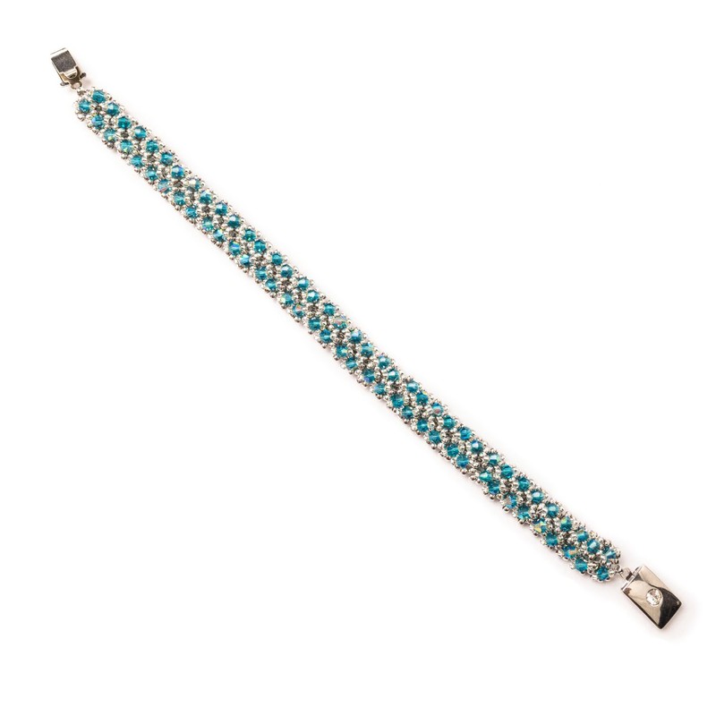 - Vibrant lagoon colorway with stunning glass and metal beads