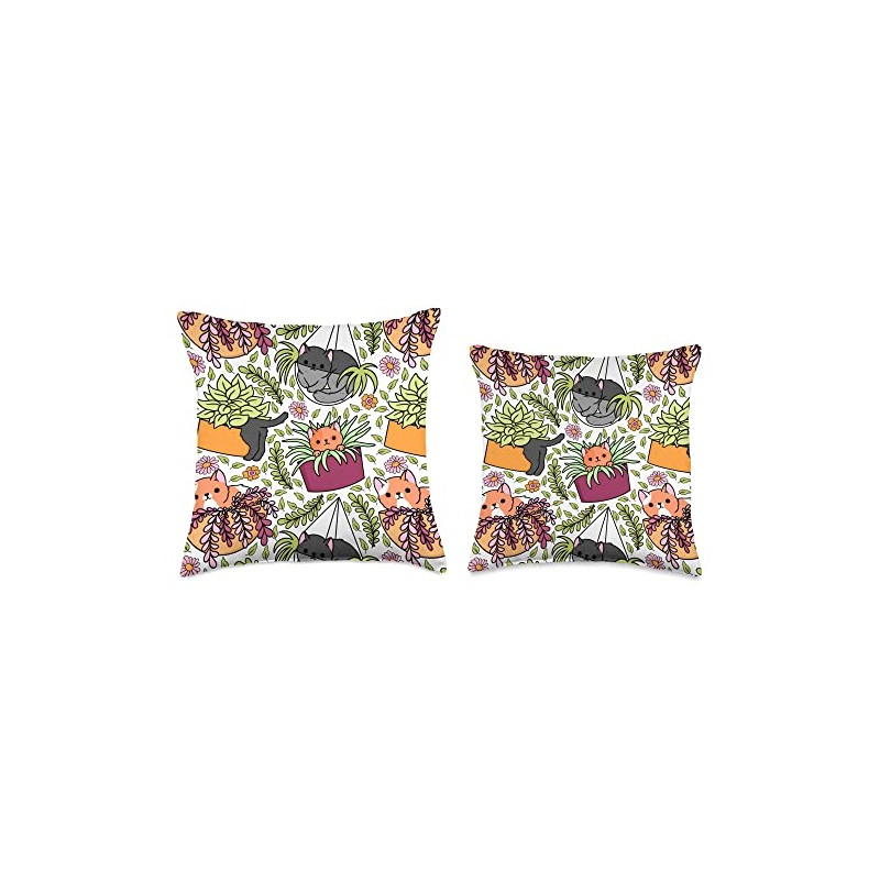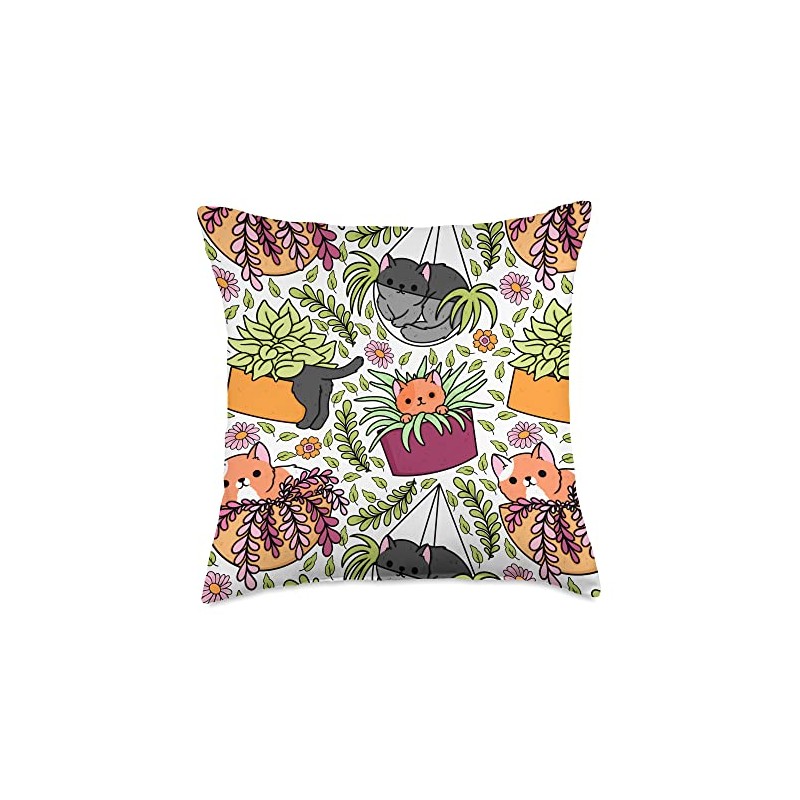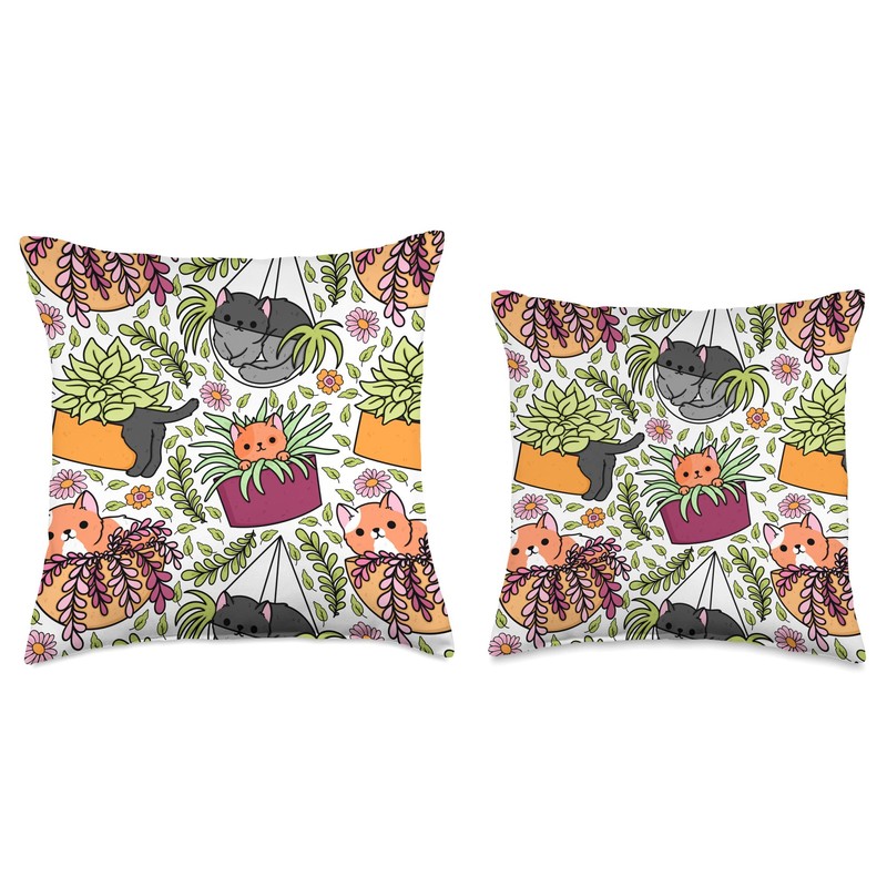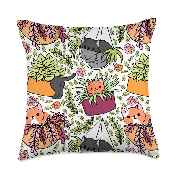 Potted Plants Cats Houseplants Hanging Planters Cute Pattern Throw Pillow