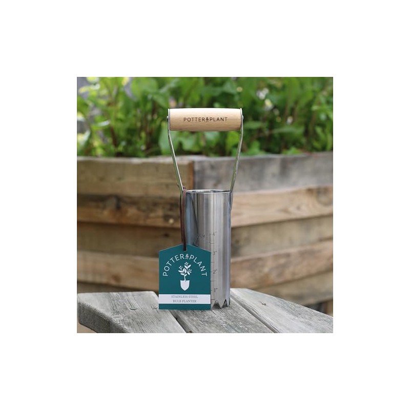 - BULB PLANTER - Our handheld Bulb Planter is made from thick, durable stainless steel. With spiked edges and a tapered shape, the cone smoothly removes and replaces soil, making bulb planting easy.