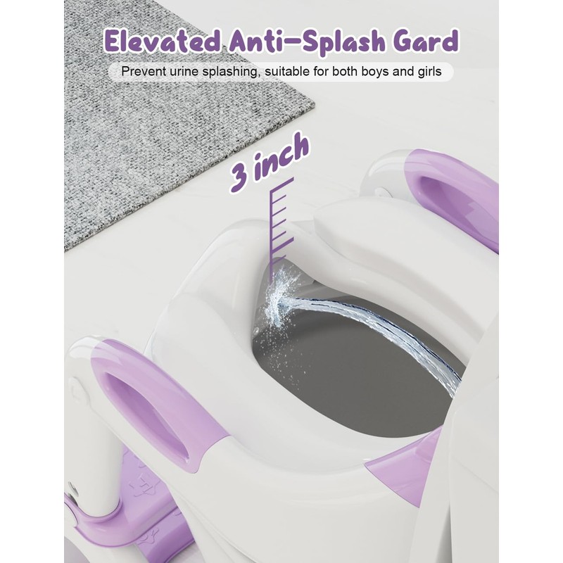 Potty Training Seat with Step Stool, Toddler Potty Training Toilet Seat with Non-Slip Step Splash Guard Safety Handles and Waterproof Cushion, 2 In 1 Toddler Potty Seat