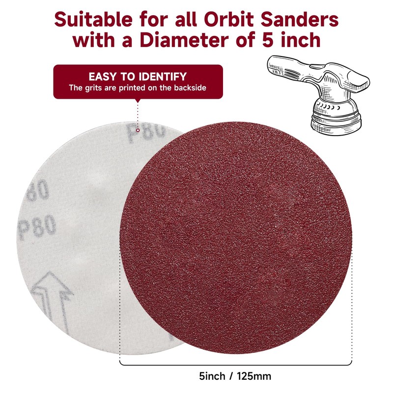 - 【Lasting and Durable】The 5-inch sanding discs are made of hard, high-quality aluminium oxide abrasive for durability. The aluminium oxide abrasive grit cuts quickly and gives your project a smooth finish.