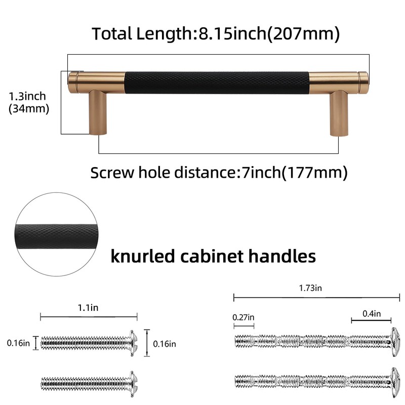 POVEFONK 10 Pack 7 inch Black and Champagne Copper Kitchen Cabinet Handles Knurled Cabinet Pulls Black Drawer Pulls Kitchen Cabinet Hardware Handles Drawer Pulls