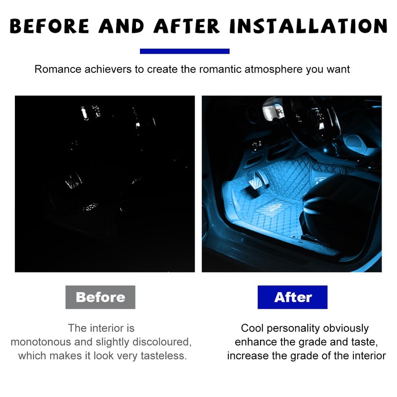 - 【Widely Used】: The LED light can be mounted under the car seat, under the dashboard or on the foot pit, suitable for most of the vehicles with DC 12V power, such as cars, SUVs, vans and trucks. It can also be used as a decorative light for home, KTV, weddings, parties and for emergency lighting.