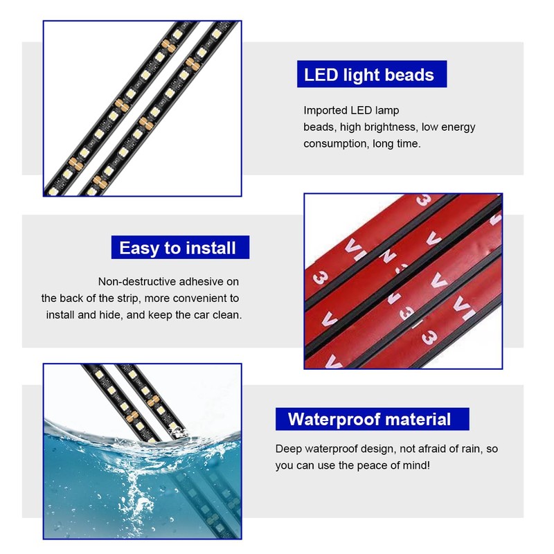 - 【Reliable Quality】: This LED light has a sealed design, so it is waterproof, with safety and durability. It is wear-resistant and has a tough texture that is not easy to break. In addition, the silicone light bar is soft, flexible and bendable for better fitting. The adhesive backing is firm and not easy to come off.