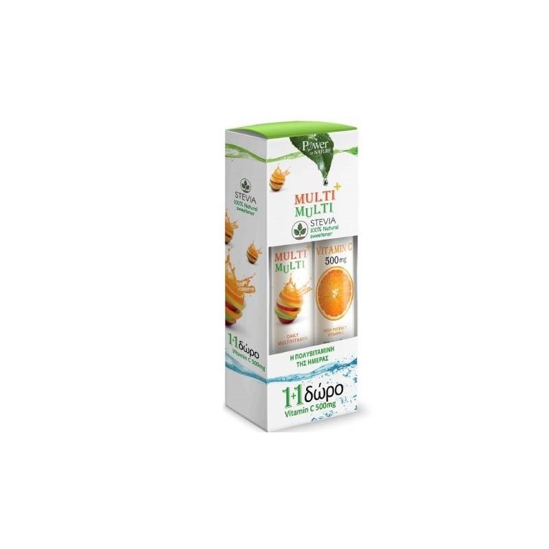 Power Health 1+1 FREE Power Of Nature Multi & Multi with Stevia, 24 Effervescent Tabs & FREE Vitamin C 500mg Orange Flavor, 20 Effervescent Tabs