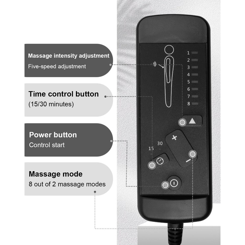 • Long Connection Cable Design: Equipped with a long connection cable, even if you are lying on the massage chair, you can easily adjust the mode and strength, ensuring that massage settings can be adjusted according to your needs at any time. Whether it's relaxing the back or soothing the legs, there's no need to get up