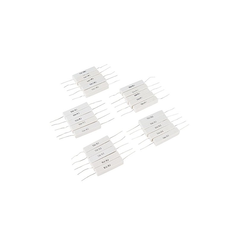 Holy Wattage, Batman! This Power Resistor Kit comes with 5 each of 5 different 10 Watt resistor values including 1 Ohm, 2 Ohm, 4 Ohm, 8 Ohm, and 16 Ohm. These resistors are capable of dissipating large amounts of power without damaging themselves. This kit is perfect for testing projects that require large amounts of power while only requiring low resistance.