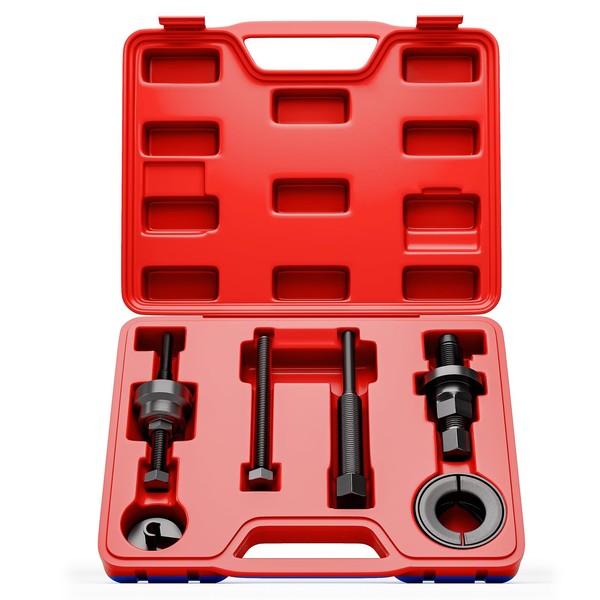 HTOMT Power Steering Pump Pulley Removal Tool,Power Steering Pulley Puller/Installer Tool Set,Pump Pulley Puller Remover and Installer Set Tools Compatible with Ford, GM, VW and Chrysler Vehicles-Red