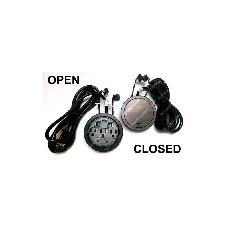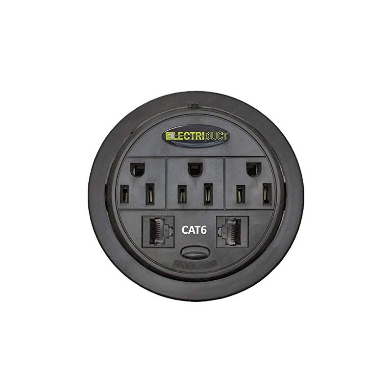 Power Tap Grommet with Hidden Power Center w/ 3 Power & 2 CAT6 - Black (Pack of 2)