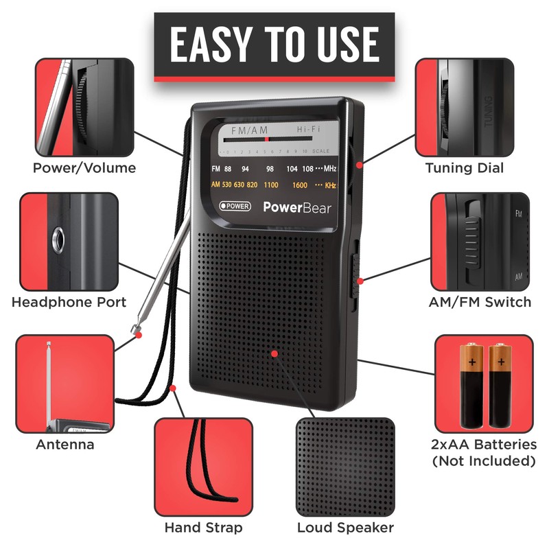 - Portable FM/AM Radio stations on the go: looking to stay up to date with the ball game or looking to get the latest news? Rest assured, the Powerbear radio will be with you wherever you go, so you can tune into you favorite radio station any time