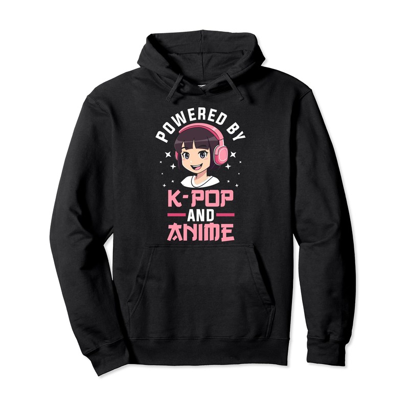 Powered by K-pop and Anime Kpop Merch Merchandise Gift Pullover Hoodie