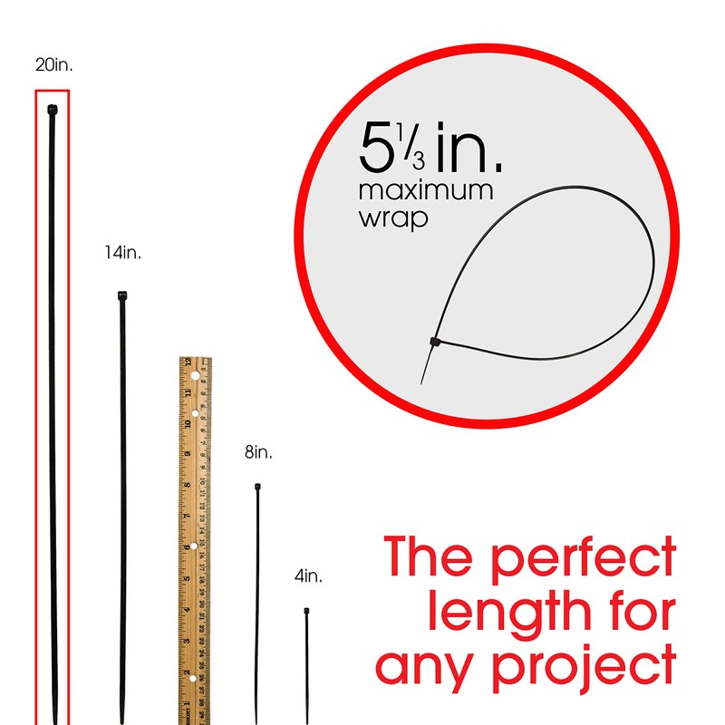 - Great Length – Use these 20-inch long, 5 1/3-inch max. diameter ties for your small, medium-and large-sized bundle needs