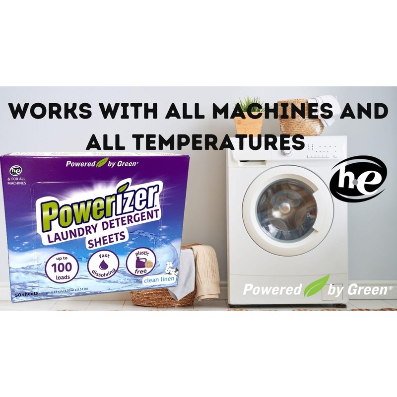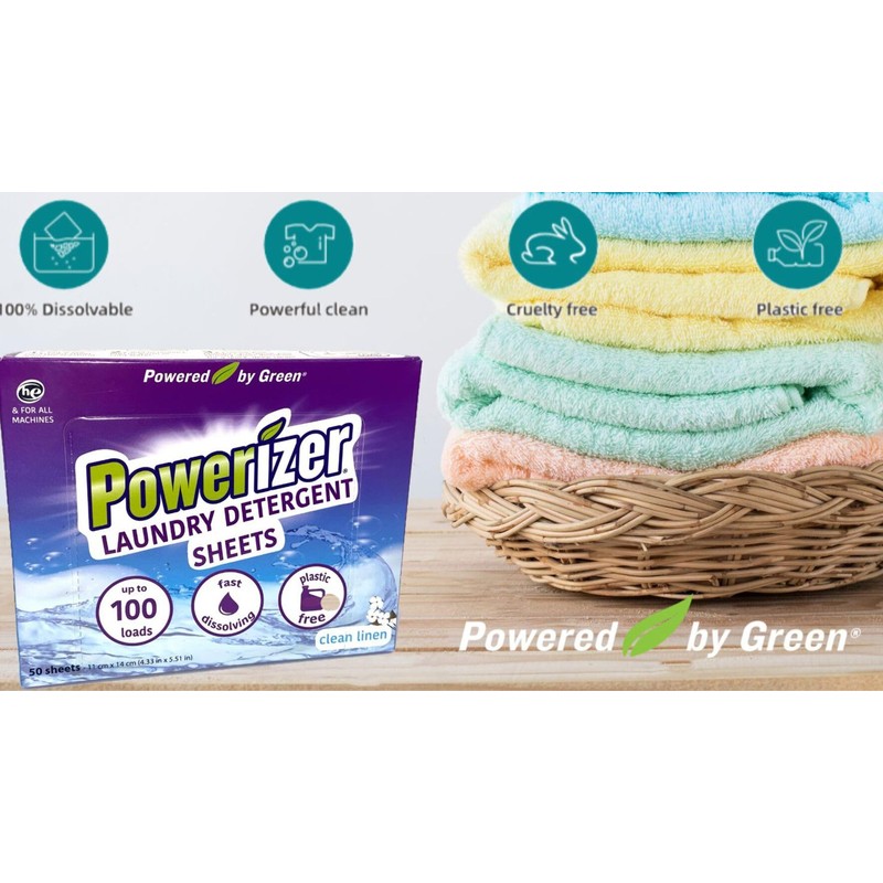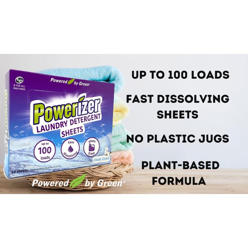 Powerizer Laundry Detergent Sheets – Up to 100 Loads |Eco-Friendly, Biodegradable, Plant-Based, Concentrated, No Plastic Jugs