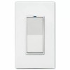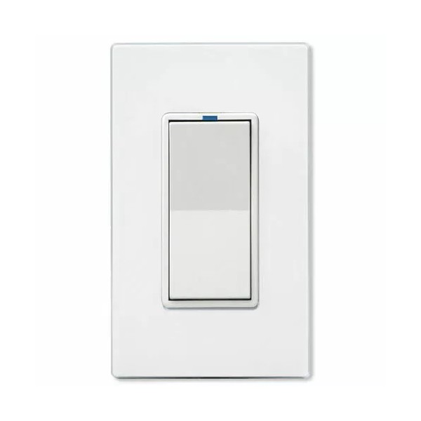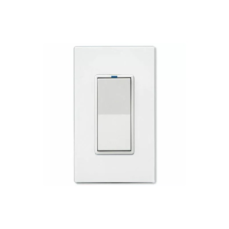 Pressing the remote’s paddle style rocker switch will cause the WS1 Wall Switch Dimmer (sold separately) to react the same as if its own local rocker switch was pressed. The RWS can be wired as far as 1000 feet away. A blue LED is provided on top of the rocker to find the switch in the dark.