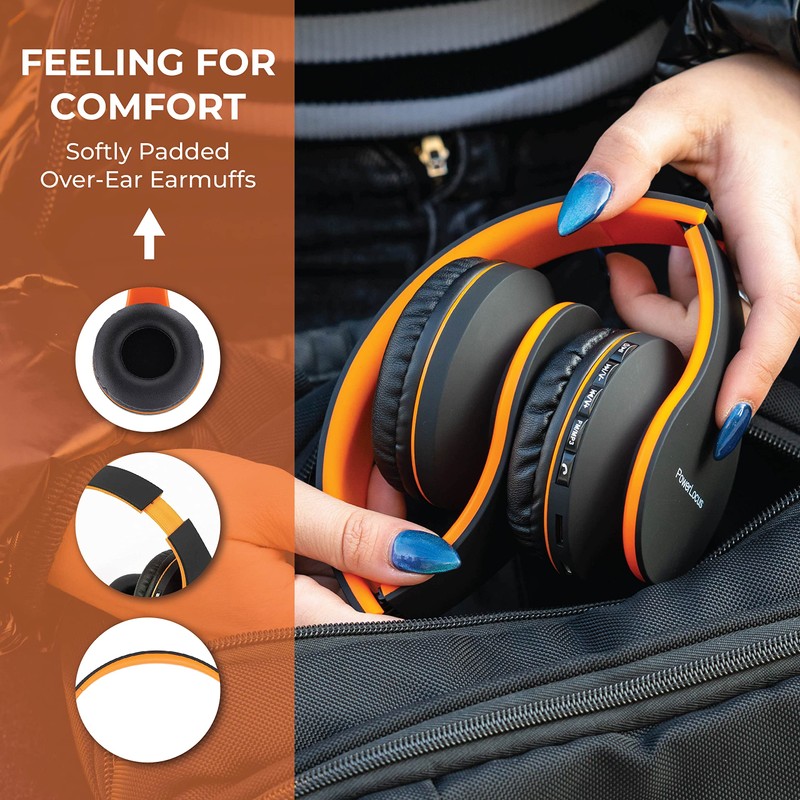 PowerLocus Bluetooth Headphones Over Ear, Foldable Wireless Headphones, Hi-Fi Stereo Headphone with Deep Bass, Micro SD/TF, FM Radio & Wired mode, Built-in Microphones, Soft Earmuffs for Phone/PC