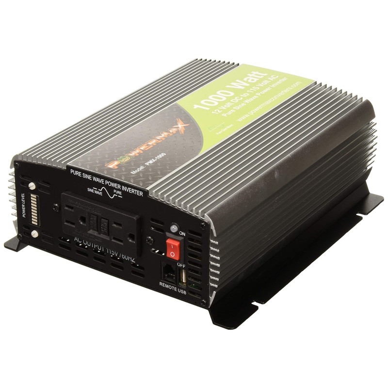 Powermax 1000 Watt Pure Sine Wave DC to AC Power Inverter, Sliver - Metalic, Model: 1000W