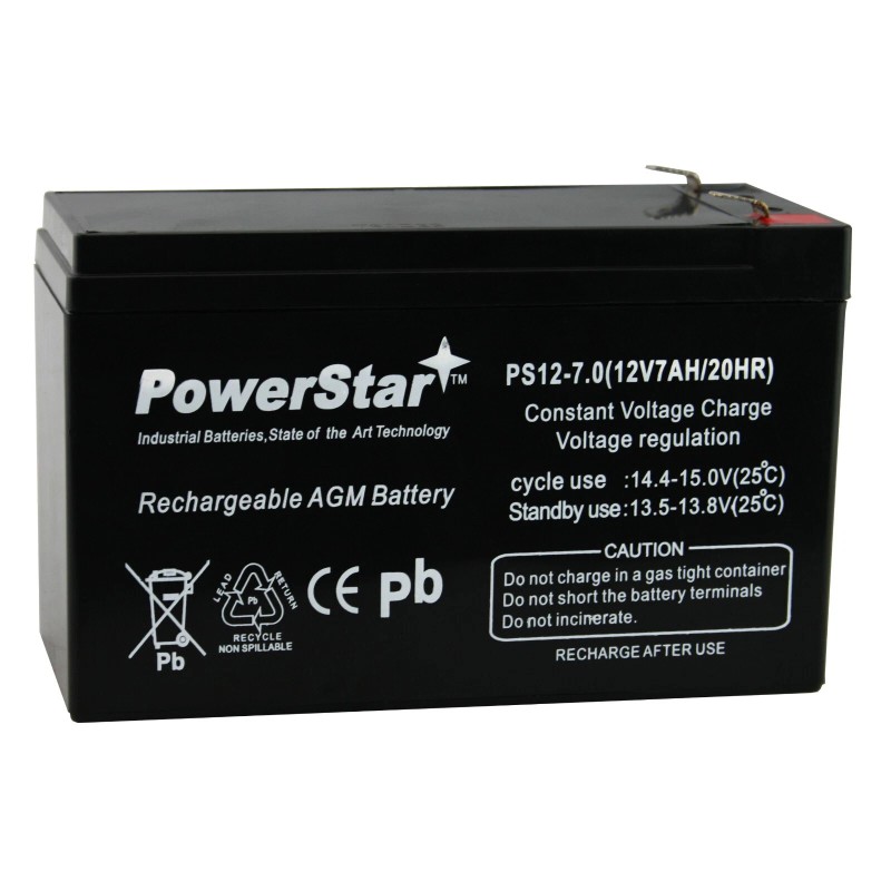 Introducing the PowerStar PS12-7 AGM Sealed Lead Acid Battery- your reliable powerhouse for any use! This battery is crafted to deliver robust performance and steadfast energy to keep you moving with confidence.