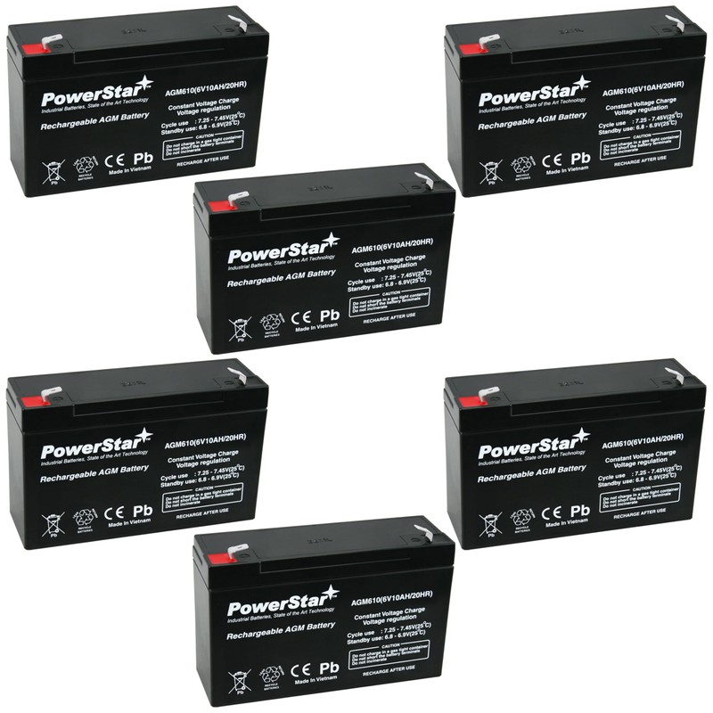 PowerStar AGM610 6V 10Ah UPS Battery – 6 Pack, Compatible with Streamlight LightBox