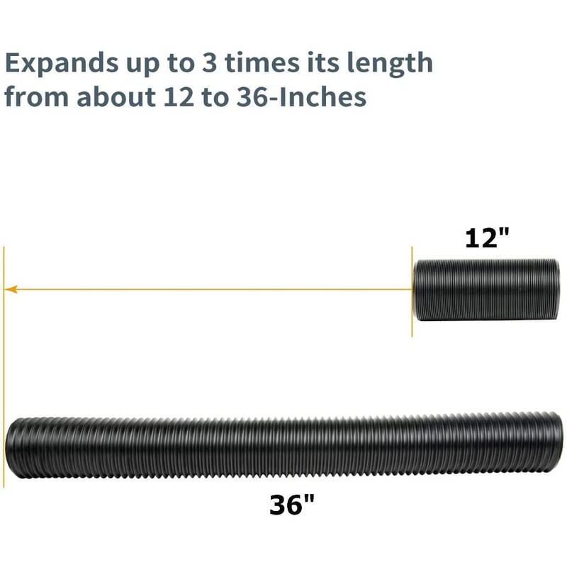 - APPLICATION: Ingenuous segmented design means it will maintain desired rigidity when dust collecting in hard to reach areas, thus maintaining optimal air flow to your dust collector. An expandable dust collection hose that extends up to 36 inches (3ft), and possesses the ability to bend, twist, and snake into a variety of positions for optimal project versatility.