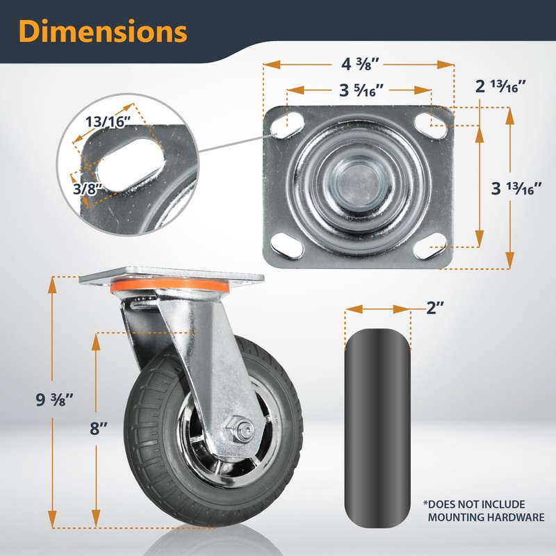 - SMOOTH & SILENT MOBILITY: Effortlessly glide heavy loads with these 8-inch caster wheels featuring smooth-rolling, non-pneumatic polypropylene wheels and dual ball bearings. Enjoy quiet and effortless movement without the worry of punctures or air leaks