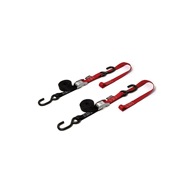PowerTye 23621 Black/Red 1" X 6ft Cam Buckle Soft-Tye Tie-Downs with Integrated Soft Hooks
