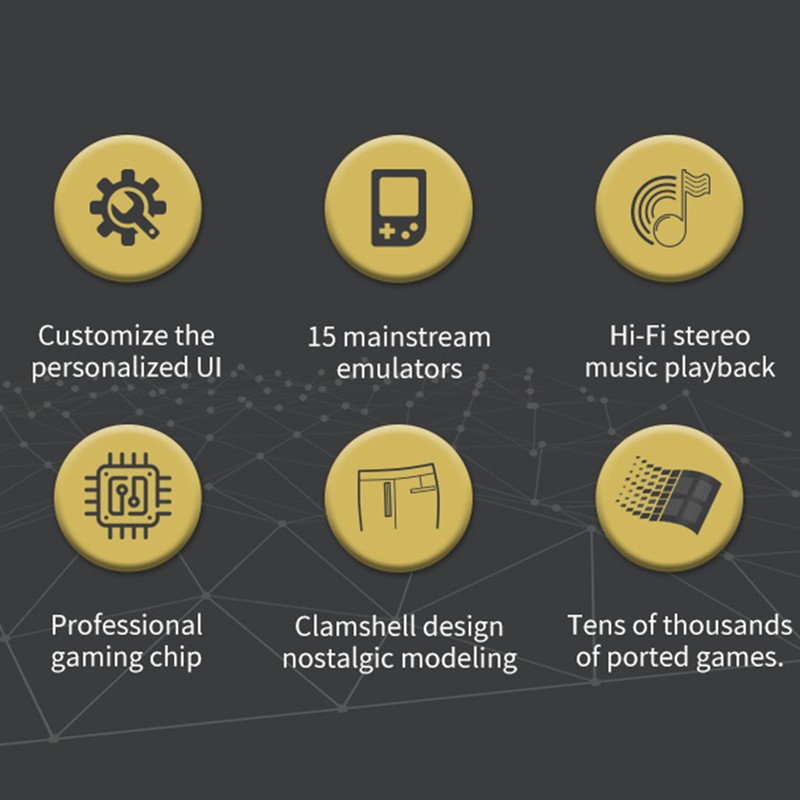 1、High-clear IPS Hard Screen: The 3.0-inch high-definition IPS hard screen, with a resolution of 320*240, will not feel tired after a long time of gaming, and the visual experience is excellent. 2、Multiple Emulator Support: Built-in 15 mainstream emulators, rich game types, to meet various game needs. 3、Dual Speaker Design: Built-in dual speakers, power-saving and large volume, can show real game sound effects, and enhance the game experience.