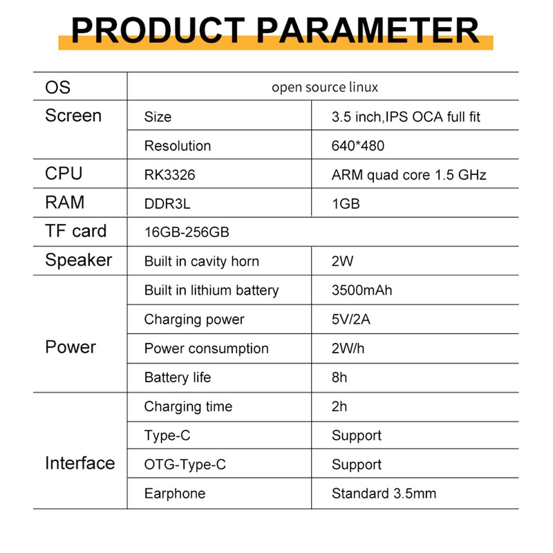 3.5-inch IPS screen with 640*480p resolution ensures a good visual experience.