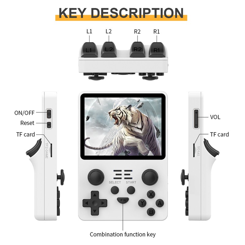 TF Card Slot 2: Game card, support 16GB-256GB, 64GB game card included (or 128GB game card included optional)