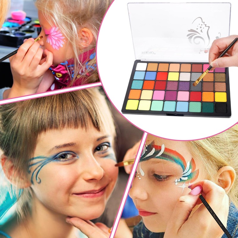 POWZOO Children's make-up set, 40 colours face paint, make-up palette, with stencils, brush, gemstones, washable, non-toxic body painting, face paint set, for Halloween, theme parties, face painting