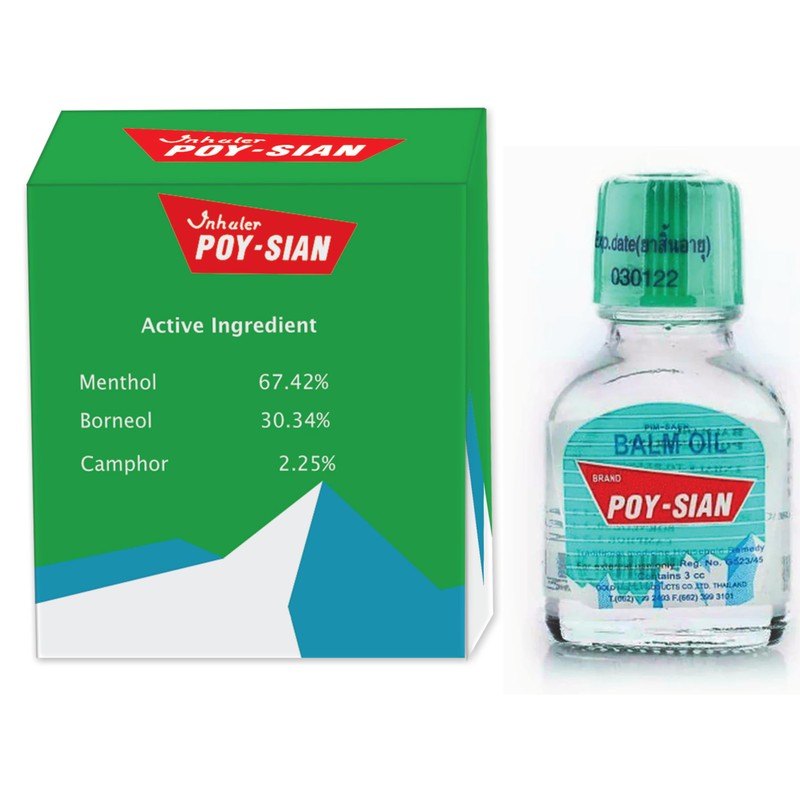 Made in Thailand. Clear your airways & strong smell. Double-sided. One side for smell, another side for rub. 6 pieces per pack. Ingredients : Menthol, Camphor, Eucalyptus oil, Borneol.